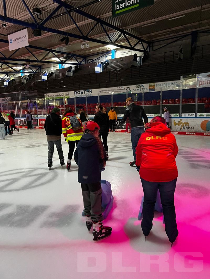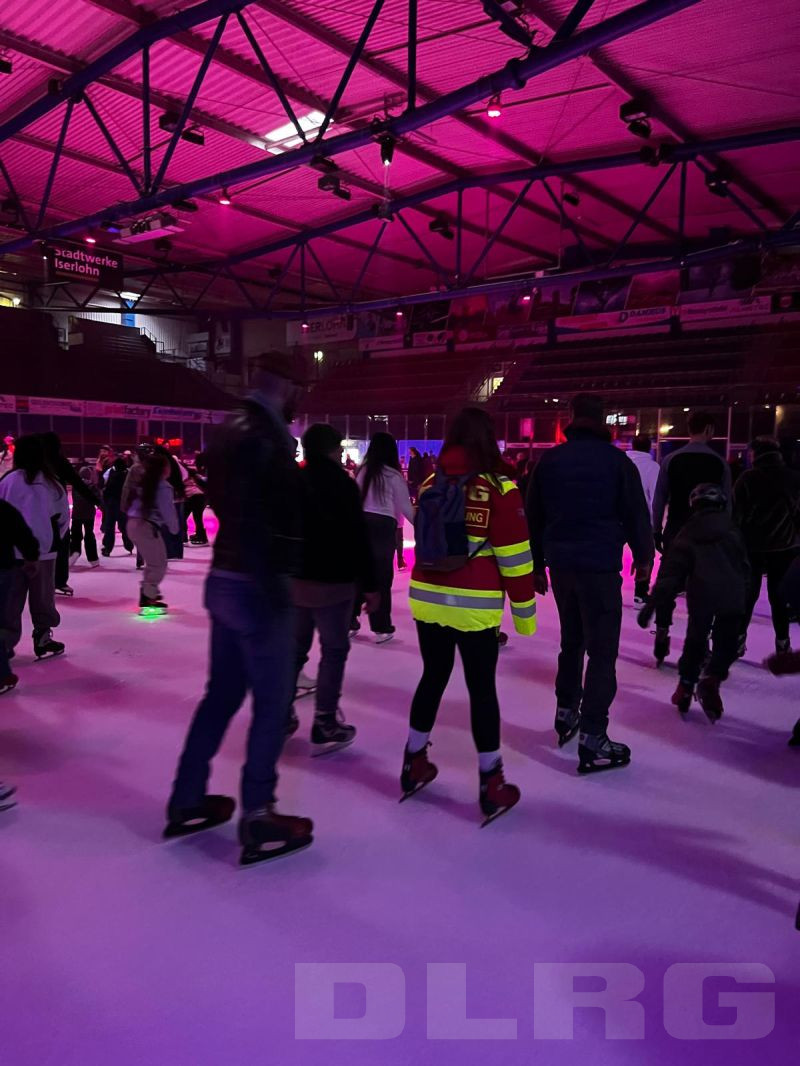 Ausflug zur Eisdisco in der Eissporthalle Iserlohn Mit über 130 Teilnehmenden war der gemeinsame Ausflug des DLRG Bezirks Märkischer Kreis zur Eisdisco in der Eissporthalle Iserlohn ein voller Erfolg. An der Veranstaltung beteiligten sich die Ortsgruppen Herscheid, Neuenrade, Werdohl, Menden, Halver, Lüdenscheid, Letmathe und Plettenberg.